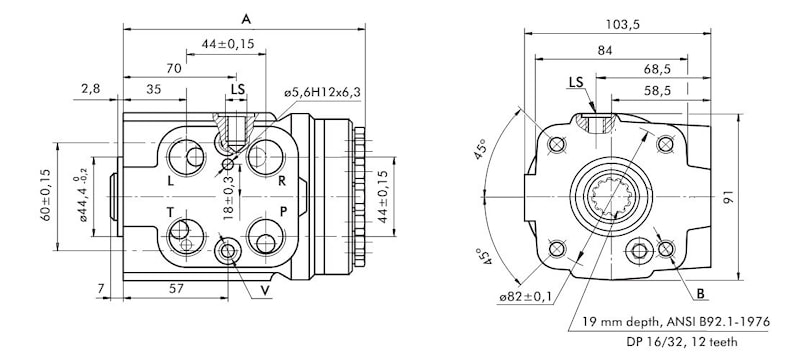 Блок гидростатического рулевого управления (насос-дозатор) тип HKU.../5TС закрытым центром, без обратной связи, с линией LS для реализации управления насосом, возможна установка приоритетного клапана.