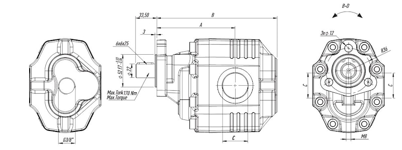 Рабочий объем | cm3/оборот | 17.2 | 27.3 | 33.8 | 43.8 | 51.73 | 61.95 | 82.13 | 102.5 | 127.5 |